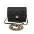 💕 샤* 클래식 카드 홀더 체인 그레인드 캐비어 & 골드 메탈 블랙