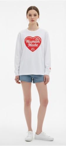 휴먼메이드 드라이 하트 그래픽 긴팔티는 브랜드의 아이코닉한 감성을 가장 직관적으로 담아낸 아이템입니다. 가슴 전면에 크게 자리 잡은 하트 그래픽 프린트는 단순한 로고를 넘어, 휴먼메이드가 전하는 유쾌하고 진정성 있는 메시지를 상징합니다. 부드럽고 견고한 코튼 원단 위에 선명하게 구현된 나염은 스트리트웨어와 캐주얼의 경계를 자연스럽게 넘나들며, 데일리 룩 속에서도 확실한 존재감을 드러냅니다. 절제된 실루엣과 대비되는 대담한 그래픽은 휴먼메이드 특유의 위트와 아이코닉한 정체성을 동시에 표현해주는 디테일입니다.