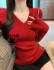 셀자수 브이넥 소매 트임 골지 니트 1016
