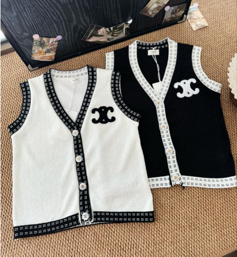 •Celin* (셀린*) 트리옹프 블랙&화이트 배색 브이넥 얇은 니트 베스트, 클래식한 블랙 앤 화이트 배색으로, 영원히 유행을 타지 않는 패션 코드를 보여줍니다. 브이넥 디자인은 목 라인을 완벽하게 보완하여 순간적으로 우아한 목처럼 보이게 합니다. 목둘레, 소매, 밑단 부분의 블랙 앤 화이트 격자무늬 테두리가 섬세함을 더하며, 모든 디테일에서 고급스러운 취향을 엿볼 수 있습니다. 상징적인 트리옹프 로고는 섬세하고 입체적이며, 시선을 사로잡는 포인트로, 한눈에 반하게 됩니다~